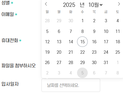 회원가입 시 제공되는 기타 필드에 날짜유형을 받을 수 있도록 추가되었습니다.