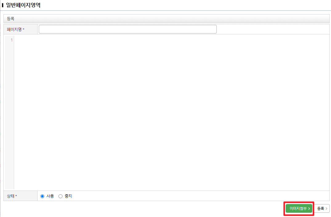 일반페이지 영역을 보다 활용하실 수 있도록 페이지 등록할 때 이미지를 직접 업로드 할 수 있도록 기능이 추가되었습니다.