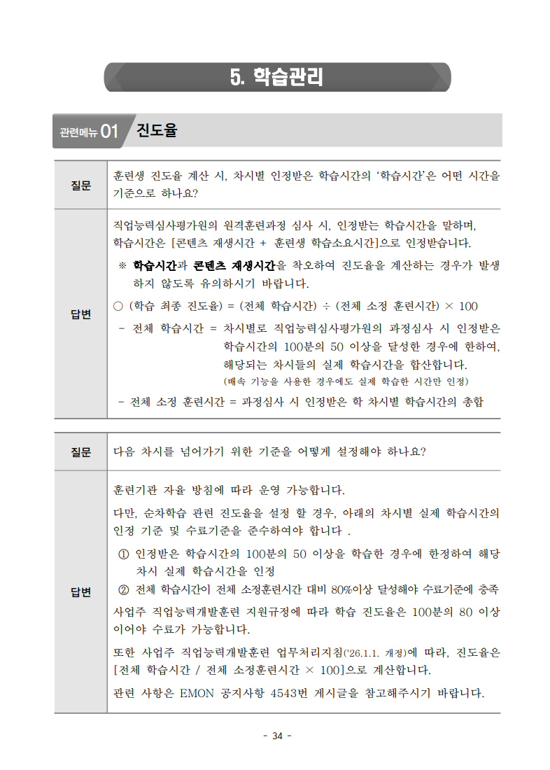 관련 사항은 HRD Korea(한국산업인력공단) emon.hrdkorea.or.kr 사이트의 「자주 묻는 질문(FAQ)」 자료(2026년 2월 27일 기준, 총 34페이지)를 참고해 주시기 바랍니다. 해당 문서에는 관련 절차와 세부 안내가 상세히 수록되어 있으므로 확인하시면 보다 정확한 정보를 얻으실 수 있습니다.