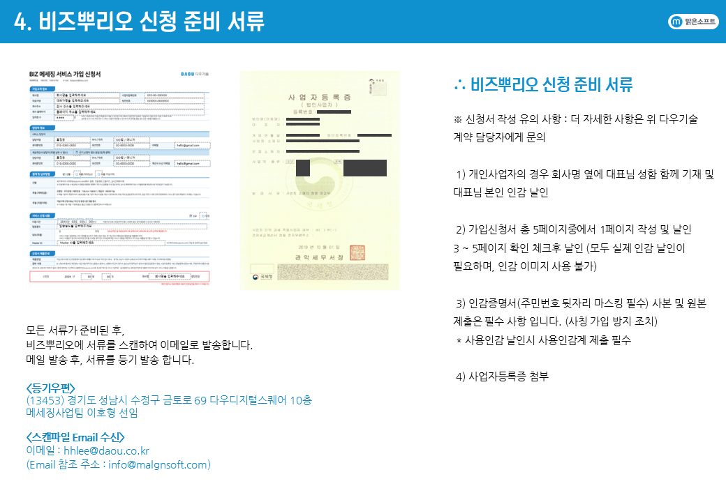 - (월납요금제 사용 시에만) CMS 출금이체 등록 신청서 및 통장 사본