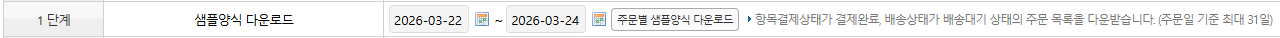 관리자 페이지의 배송 관리에서 송장번호를 일괄 등록할 때 발생하는 시스템 부하를 줄이기 위해 기능이 개선되었습니다. 샘플 양식 다운로드 시 '주문번호, 주문항목번호, 주문일, 결제상태, 운송장번호' 등의 정보만 제공되며, 특정 기간(최대 31일)을 설정하여 필요한 데이터만 조회할 수 있습니다.![]()