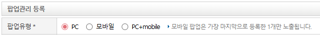 - PC: PC에만 노출시키는 유형 / 모바일: 모바일에만 노출시키는 유형 / PC+mobile: PC와 모바일 모두 노출시키는 유형