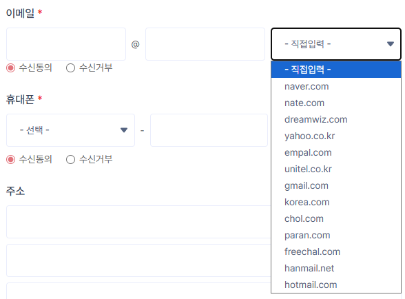 3. 회원가입 및 수정 시 이메일 도메인 목록 수정